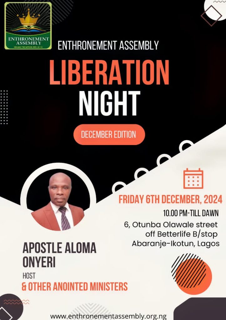 For more information, enquiries, counselling, prayers and help, mail info@enthronementassembly.org.ng, enthronementassembly10@gmail.com or visit www.enthronementassembly.org.ng