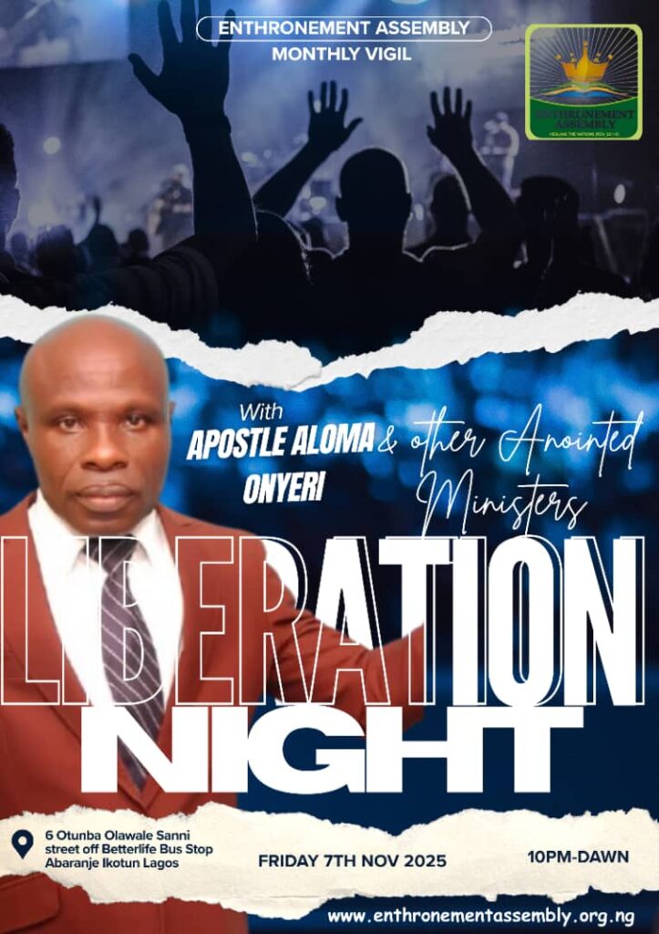 For more information, enquiries, counselling, prayers and help, mail info@enthronementassembly.org.ng, enthronementassembly10@gmail.com or visit www.enthronementassembly.org.ng